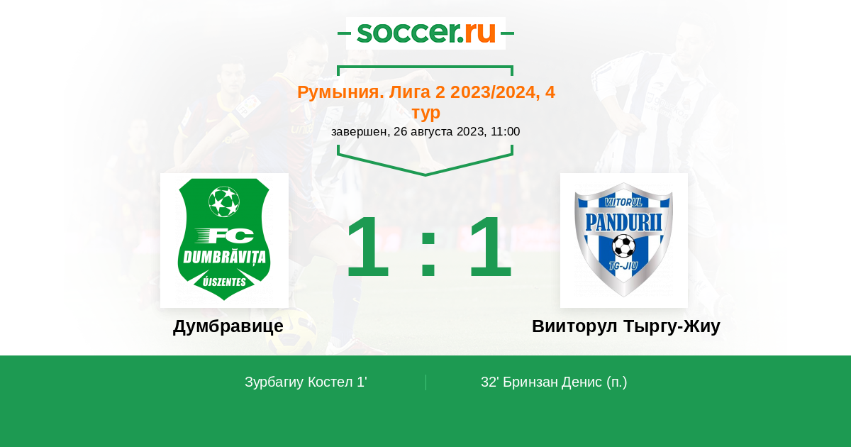 Протокол матча Думбравице против Вииторул Тыргу-Жиу