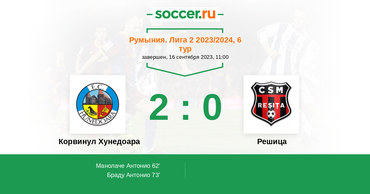 Протокол матча Корвинул Хунедоара против Решица