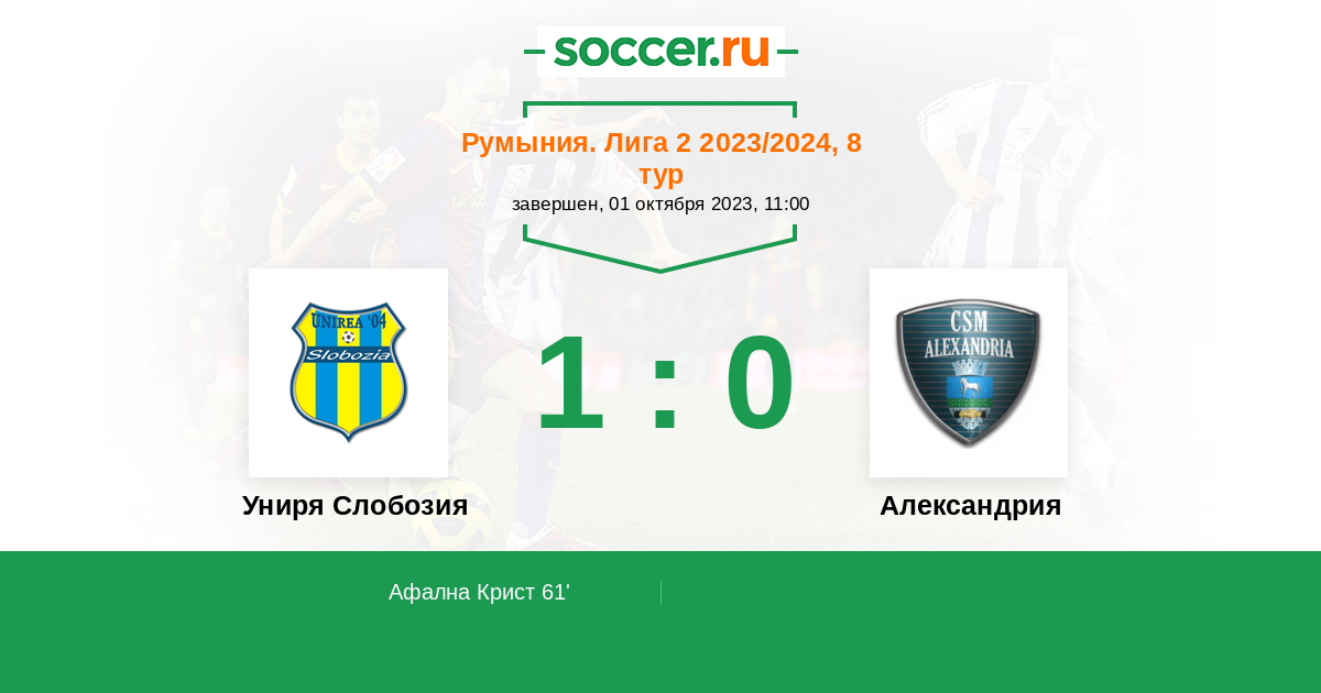 Протокол матча Униря Слобозия против Александрия