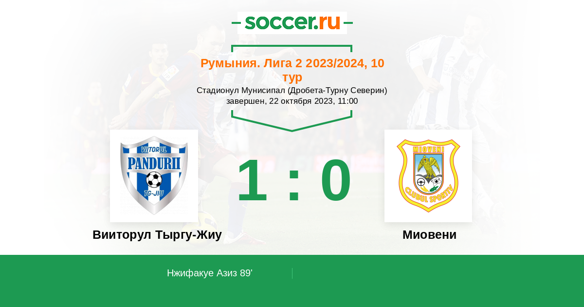 Протокол матча Вииторул Тыргу-Жиу против Миовени