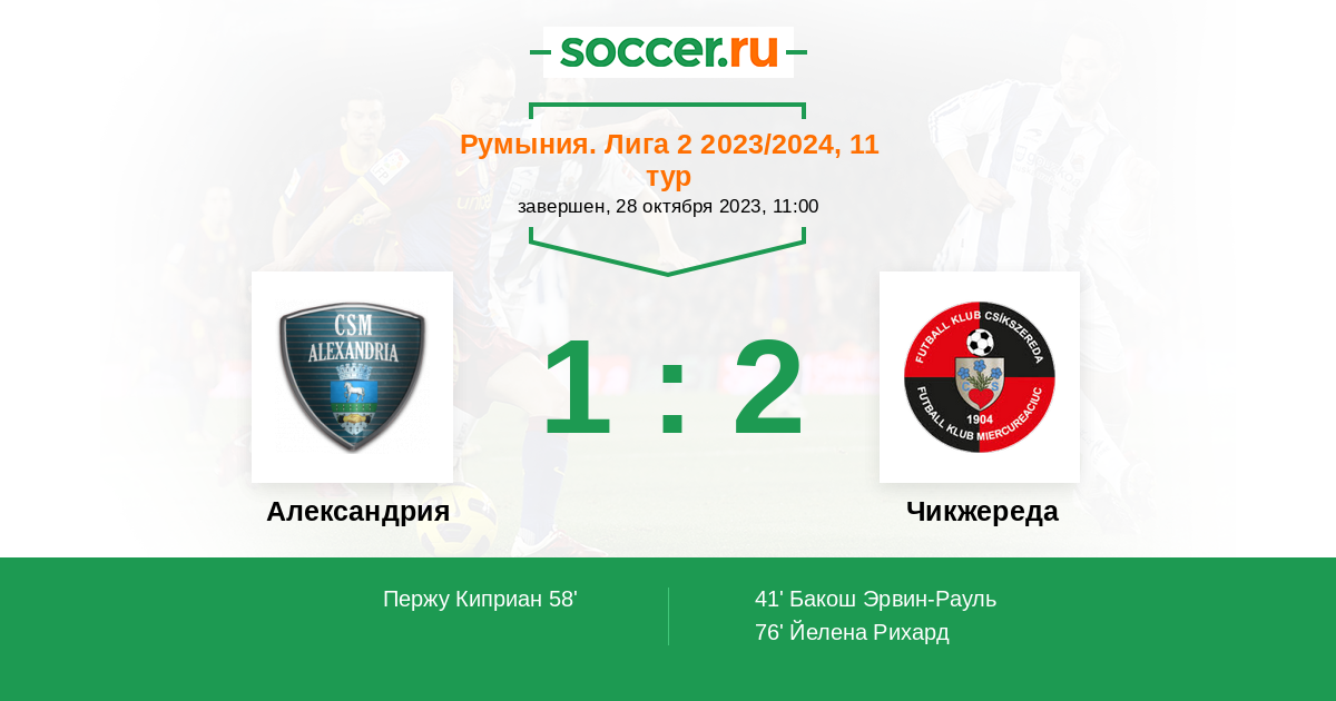 Протокол матча Александрия против Меркуря-Чук Чикжереда