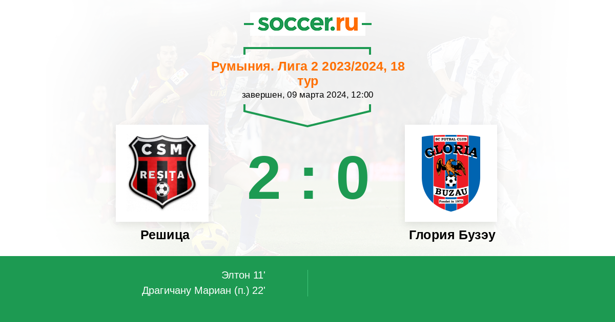 Протокол матча Решица против Глория Бузау