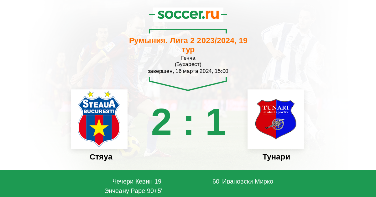 Протокол матча Стяуа против Тунари