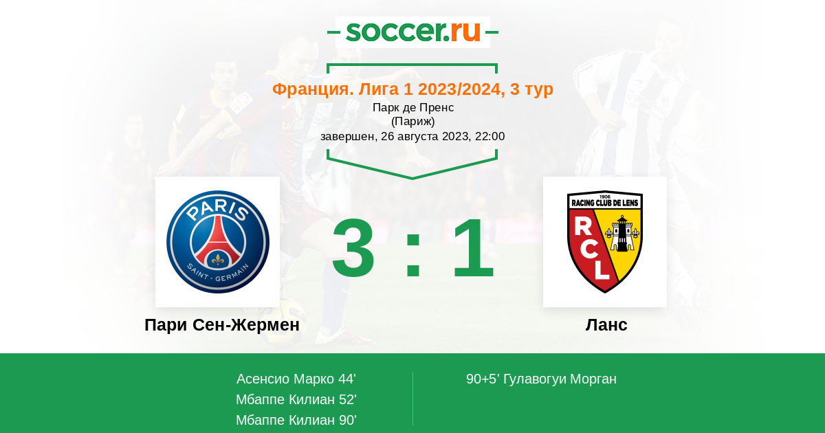 Протокол матча Пари Сен-Жермен против Ланс