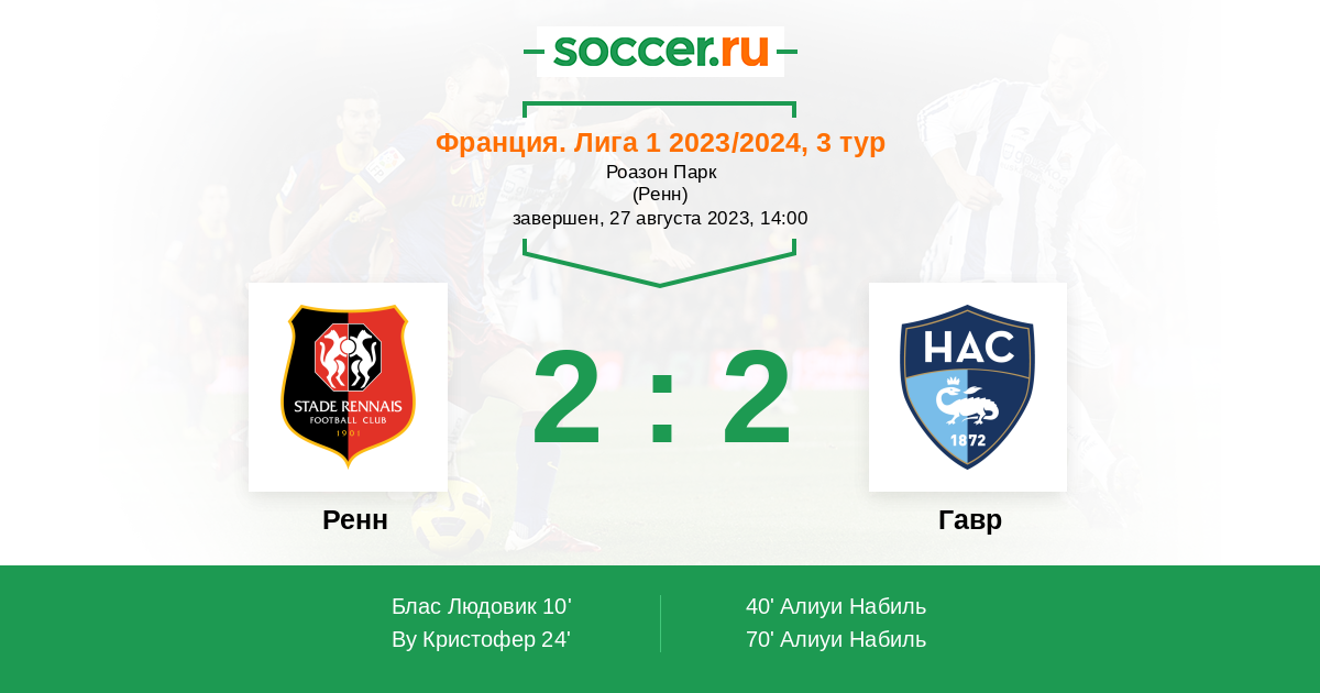 Протокол матча Ренн против Гавр