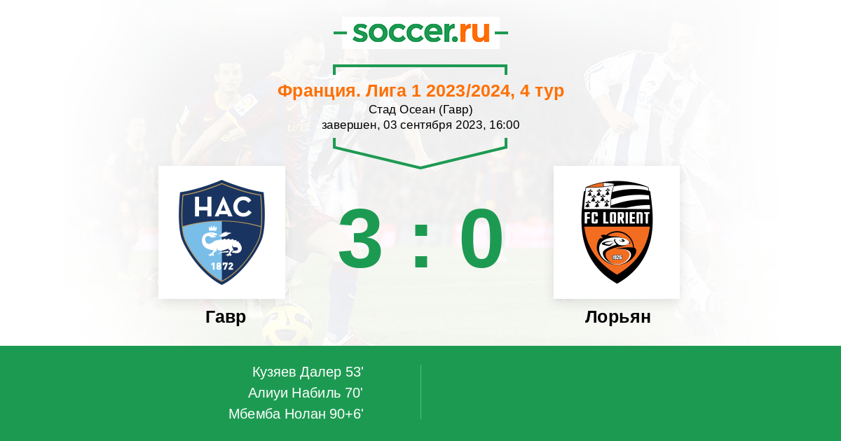 Протокол матча Гавр против Лорьян