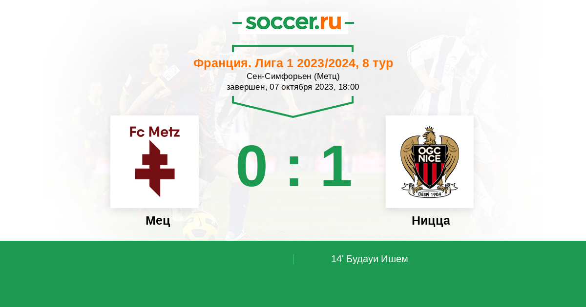 Протокол матча Мец против Ницца