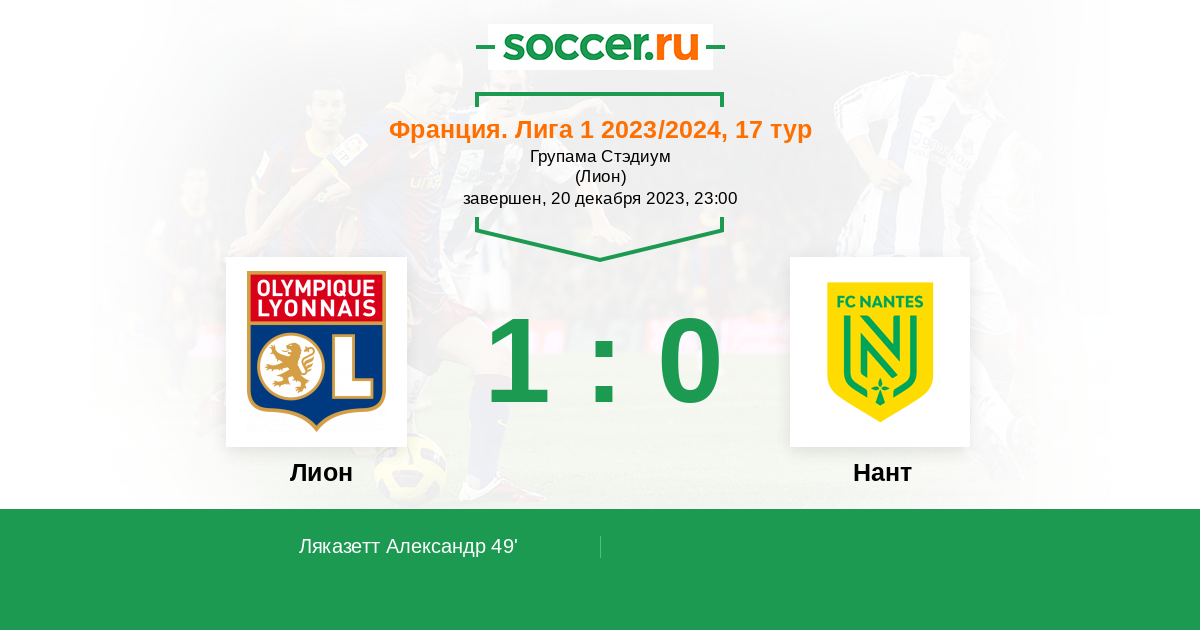 Протокол матча Лион против Нант