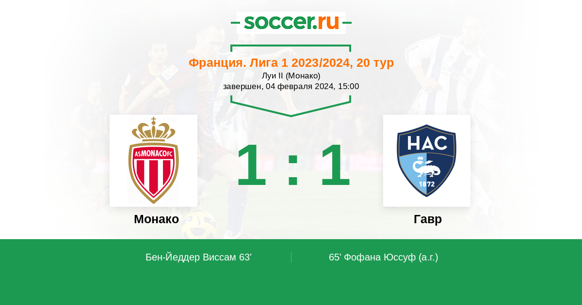 Протокол матча Монако против Гавр