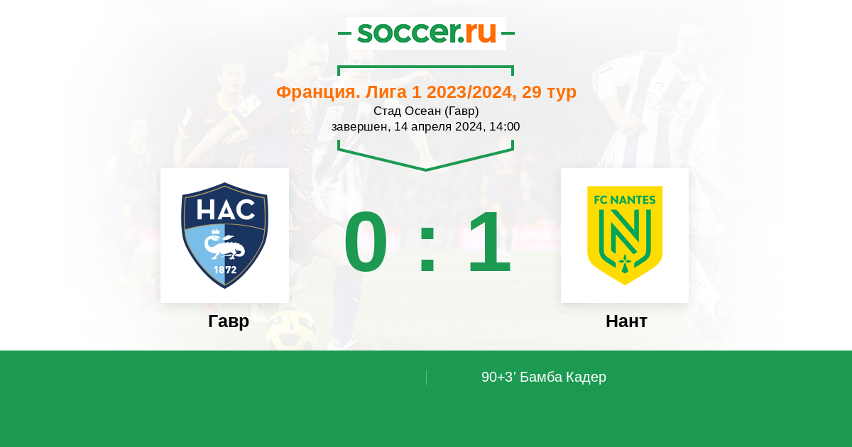 Протокол матча Гавр против Нант