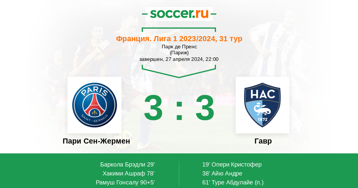 Протокол матча Пари Сен-Жермен против Гавр