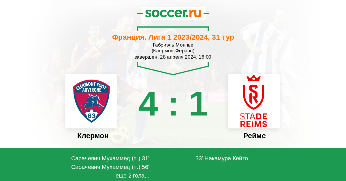 Протокол матча Клермон против Реймс