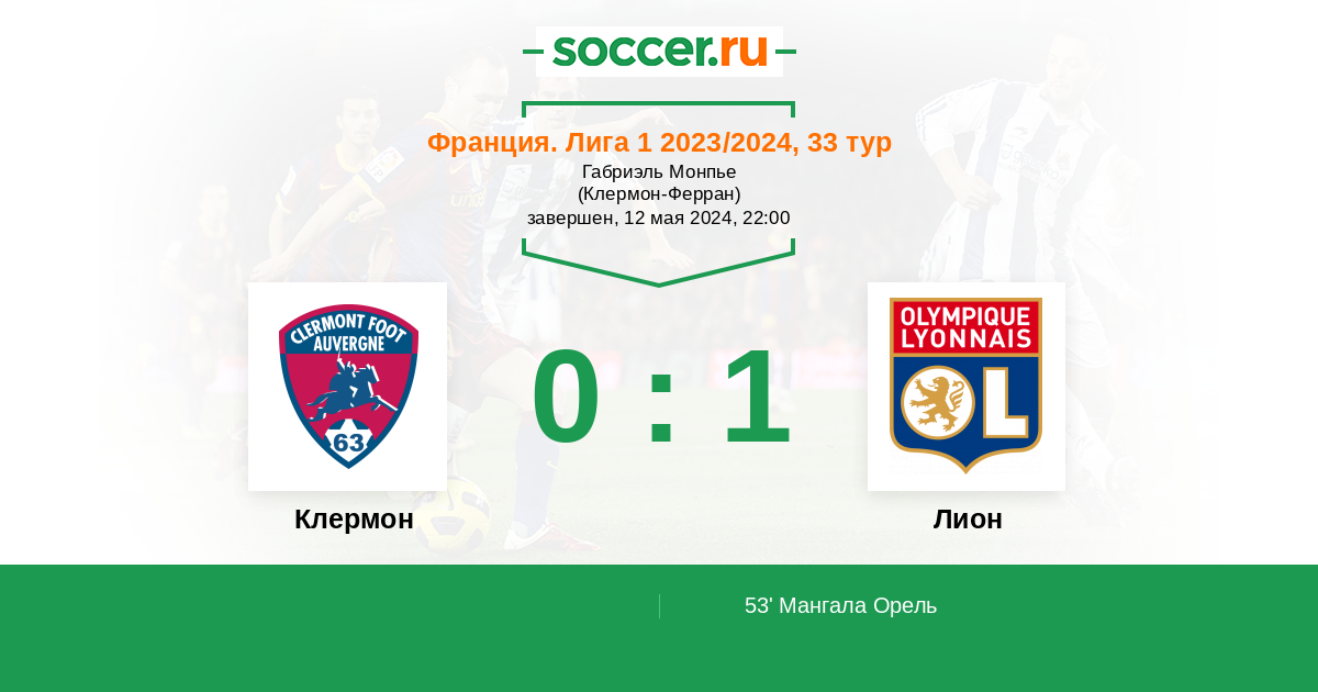 Протокол матча Клермон против Лион