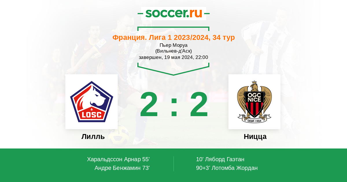 Протокол матча Лилль против Ницца