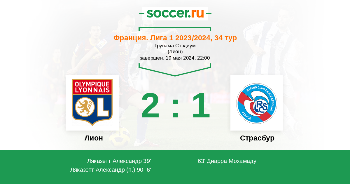 39' (1:0) Ляказетт Александр (10) (Бенрахма Мохамед (17))