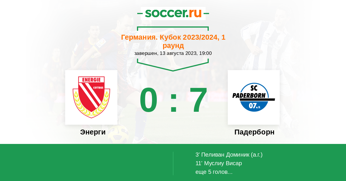 Протокол матча Энерги против Падерборн