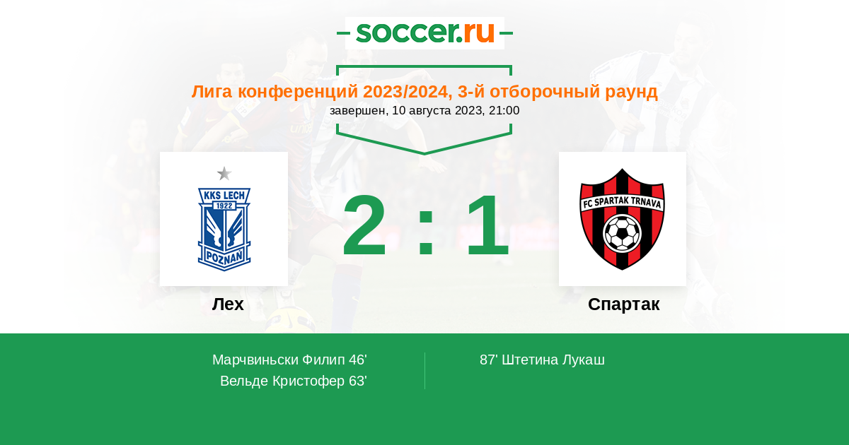 Протокол матча Лех против Спартак