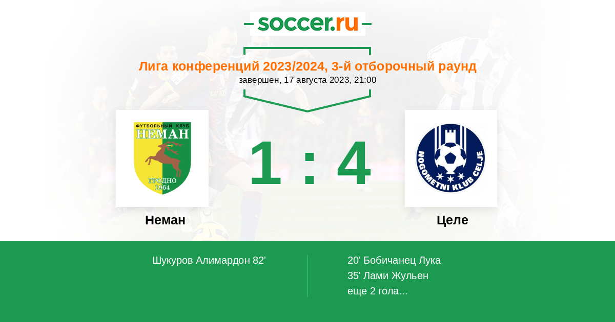 Протокол матча Неман против Целе