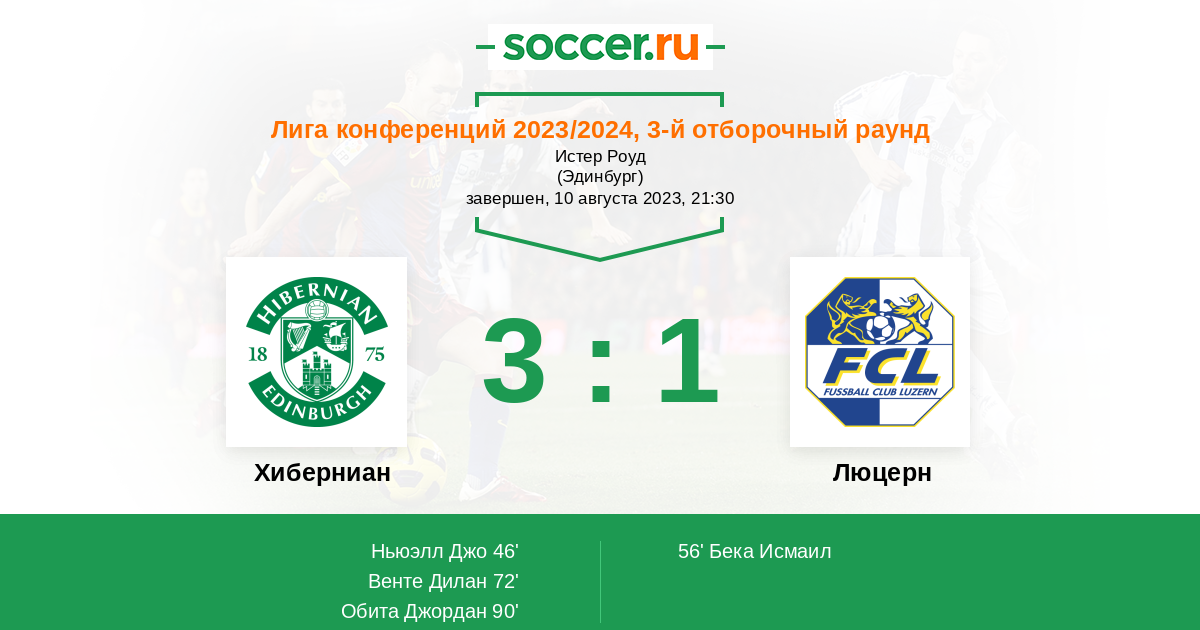 Протокол матча Хиберниан против Люцерн