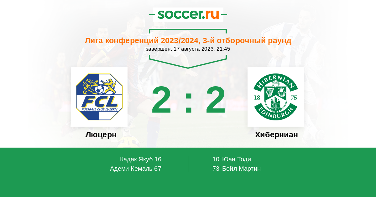 Протокол матча Люцерн против Хиберниан