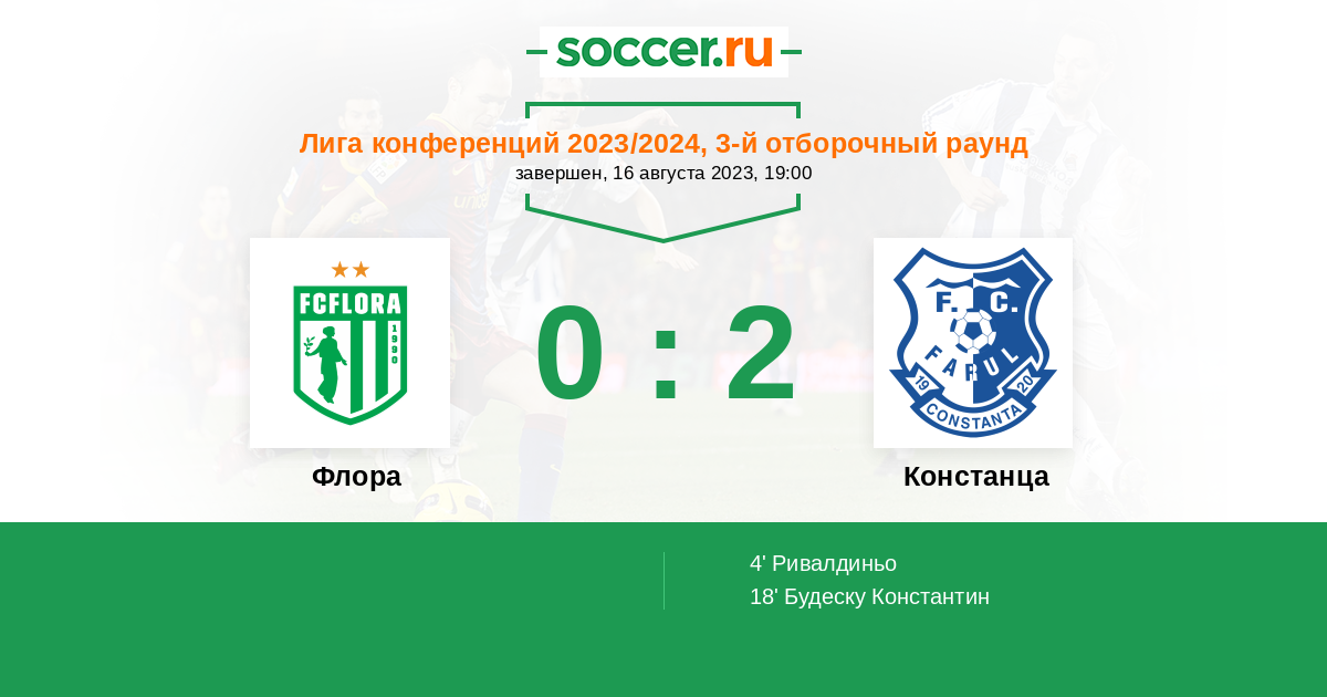 Флора - Констанца ! Румыны этом розыгрыше играют на редкость результативно и забивают в каждом матче по 3 мяча . Думаю и в этом тоже сумеют отличится . Эстонцы играющие дома , вряд ли захотят проигрывать без борьбы . ТБ .
