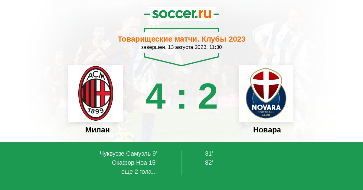 Протокол матча Милан против Новара