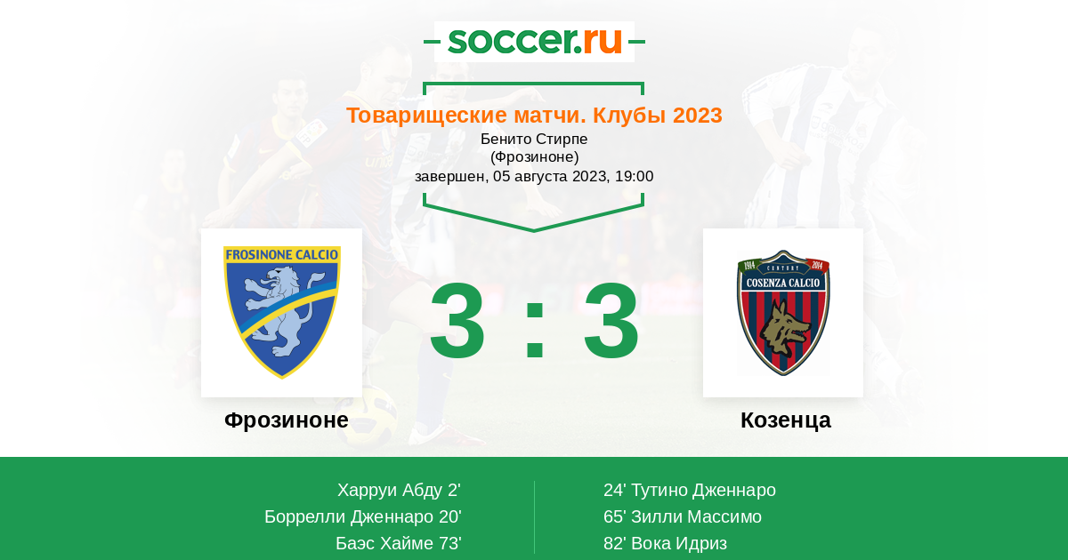 Протокол матча Фрозиноне против Козенца