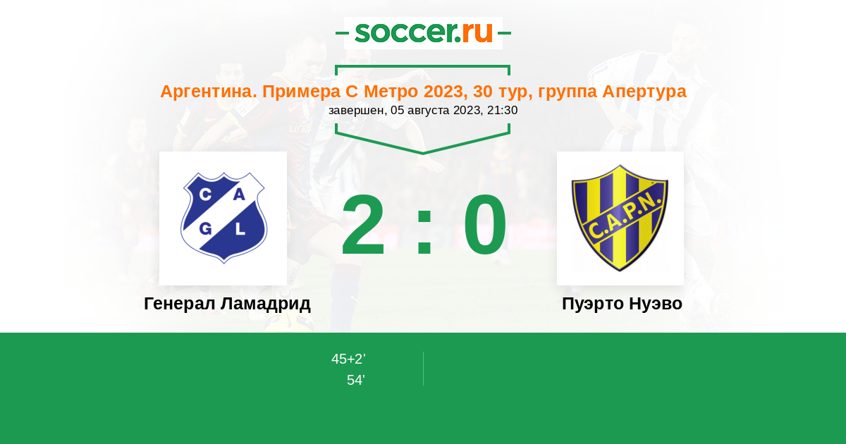 Протокол матча Генерал Ламадрид против Пуэрто Нуэво