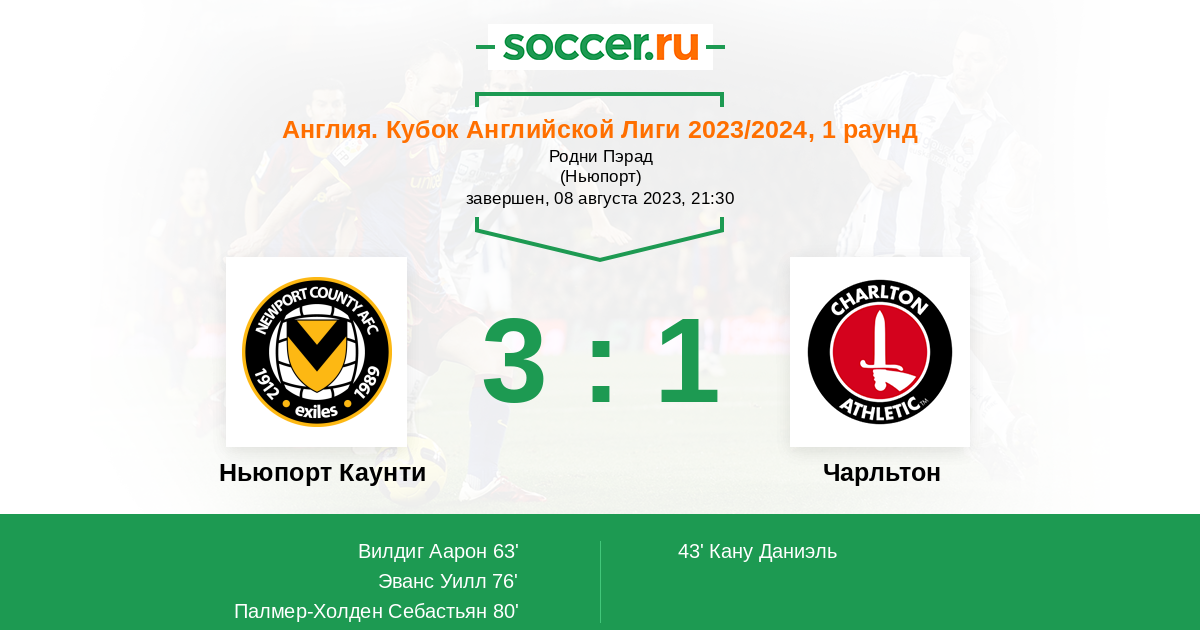 Протокол матча Ньюпорт Каунти против Чарльтон