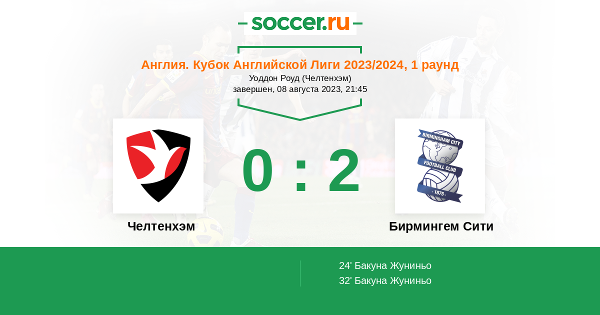 Протокол матча Челтенхэм против Бирмингем Сити