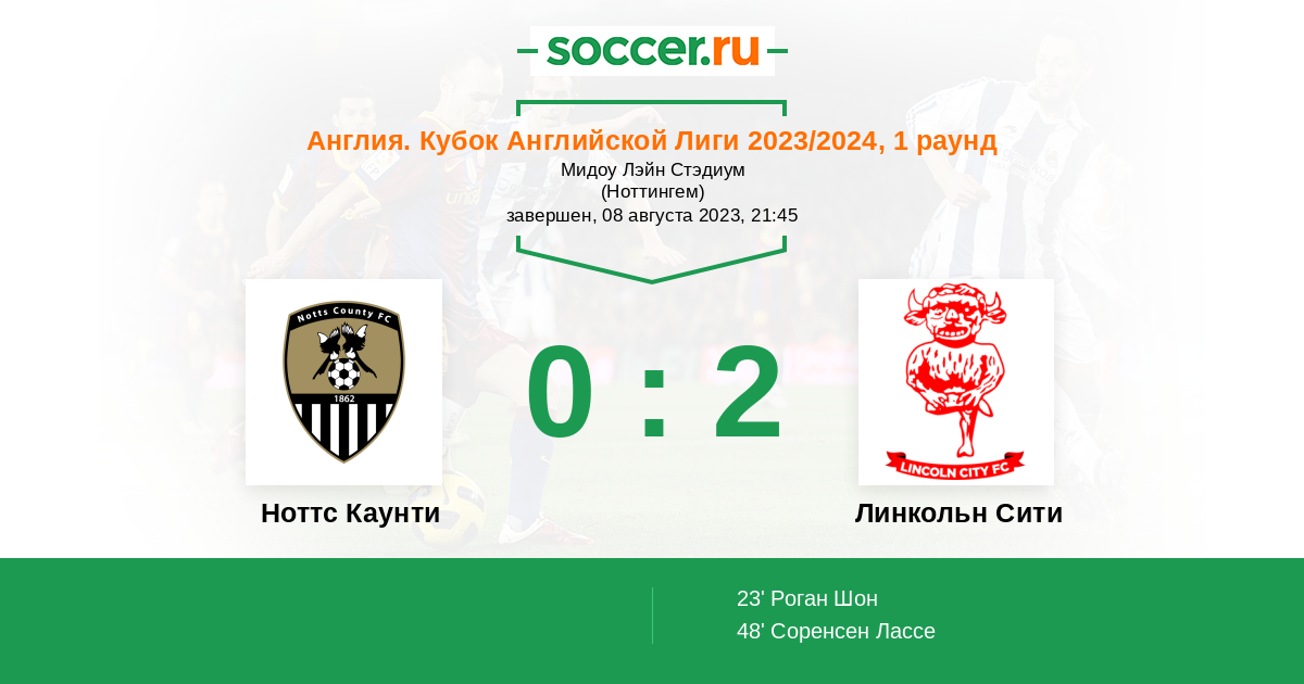 Протокол матча Ноттс Каунти против Линкольн Сити