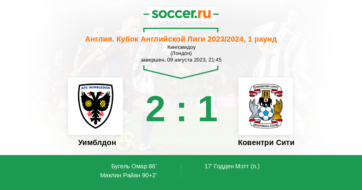 Протокол матча Уимблдон против Ковентри Сити