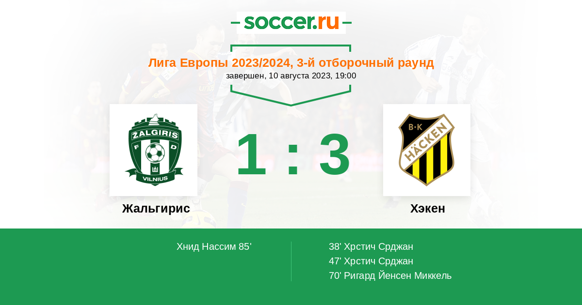 Протокол матча Жальгирис против Хэкен