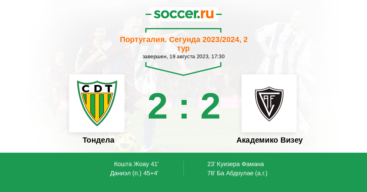 Протокол матча Тондела против Академико Визеу