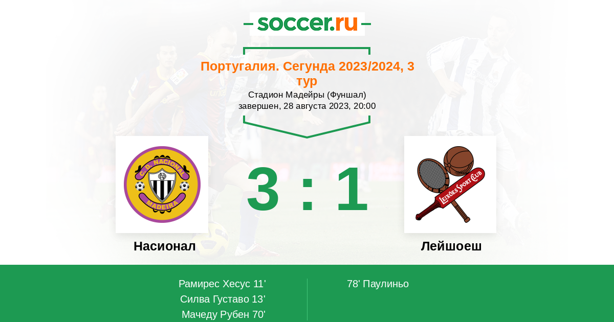 Протокол матча Насионал против Лейшоеш