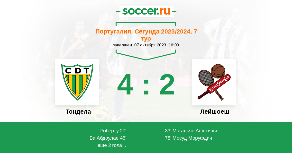 Протокол матча Тондела против Лейшоеш