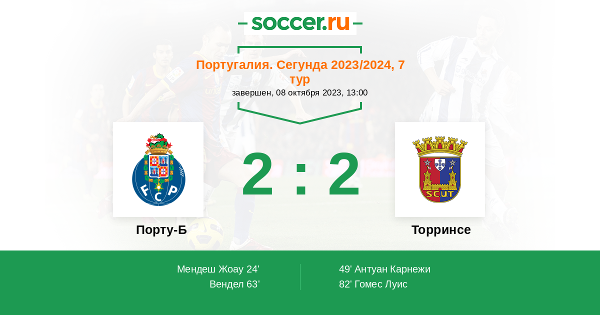 Протокол матча Порту-Б против Торринсе