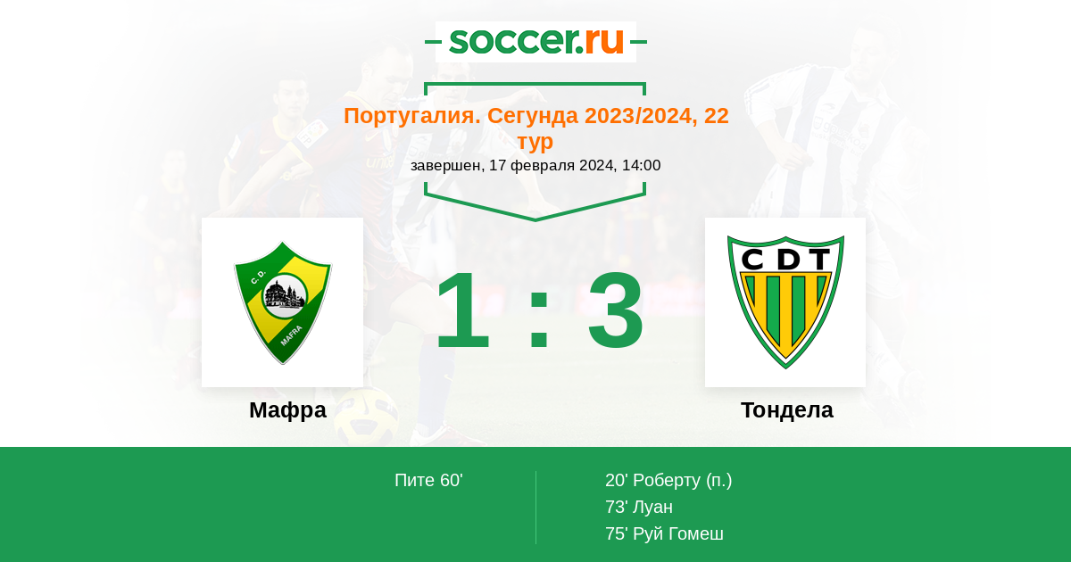 20’ 0:1(П) Роберту