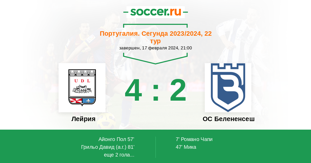 Протокол матча Лейрия против ОС Белененсеш