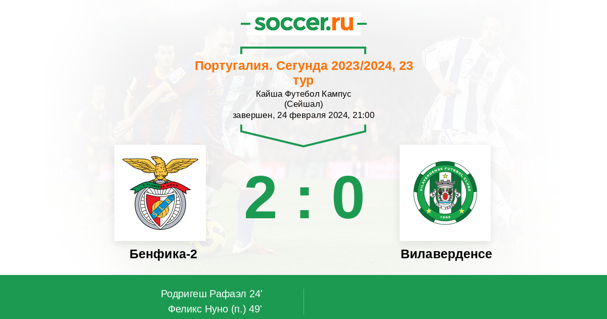 Протокол матча Бенфика-2 против Вилаверденсе