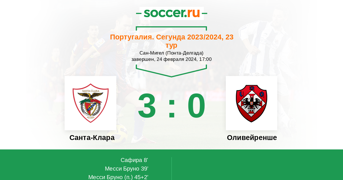 Протокол матча Санта-Клара против Оливейренше