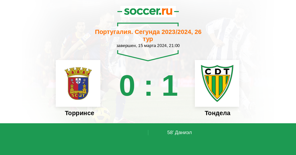 Протокол матча Торринсе против Тондела