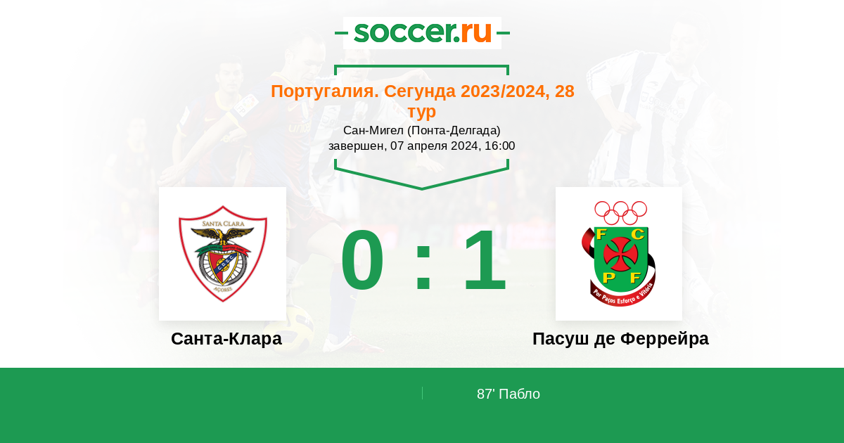 Протокол матча Санта-Клара против Пасуш де Феррейра