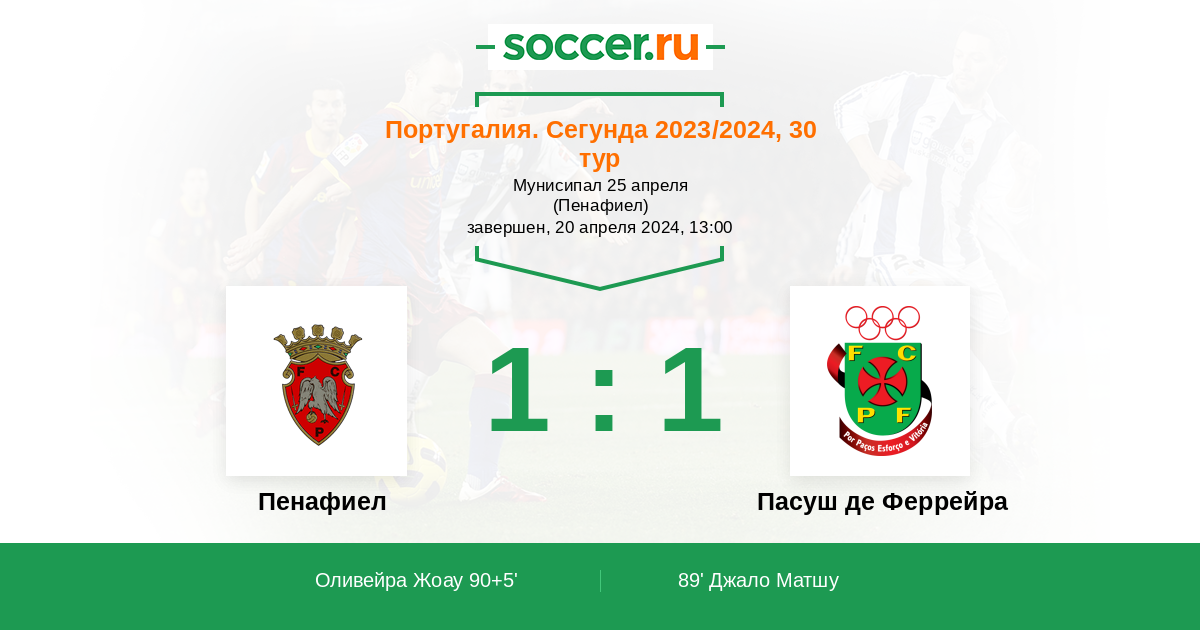 Протокол матча Пенафиел против Пасуш де Феррейра