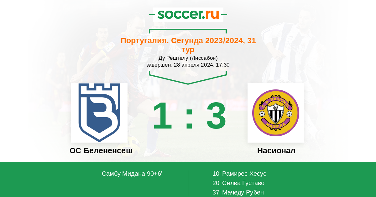 Протокол матча ОС Белененсеш против Насионал