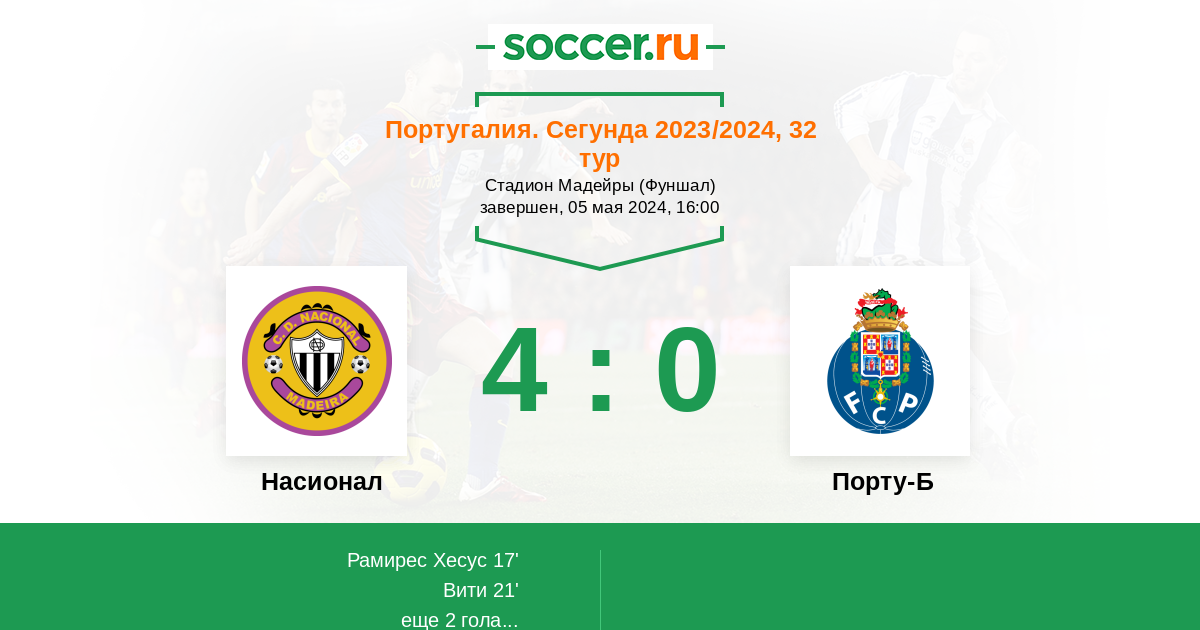 Протокол матча Насионал против Порту-Б