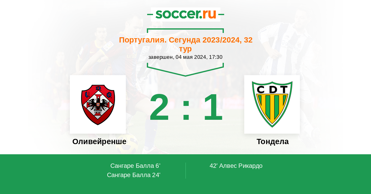Протокол матча Оливейренше против Тондела