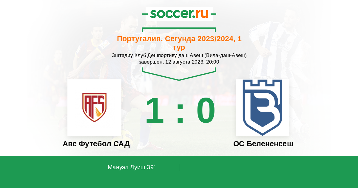 Протокол матча Авс Футебол САД против ОС Белененсеш