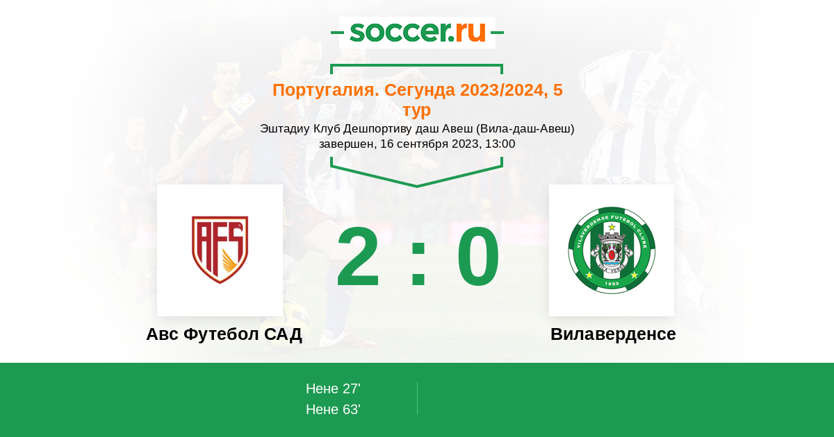 Протокол матча Авс Футебол САД против Вилаверденсе