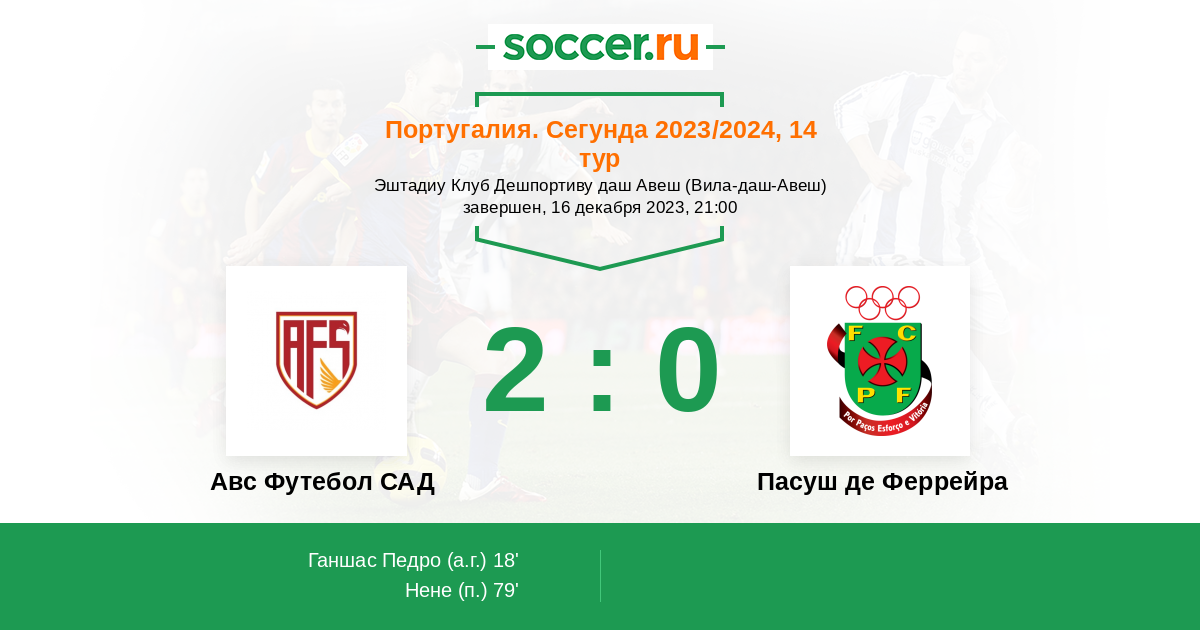 Протокол матча Авс Футебол САД против Пасуш де Феррейра